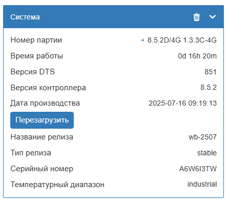 - Контроллер: Wiren Board 8.5.2, релиз wb-2507 stable.