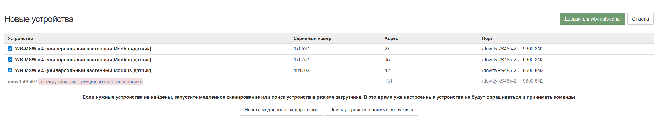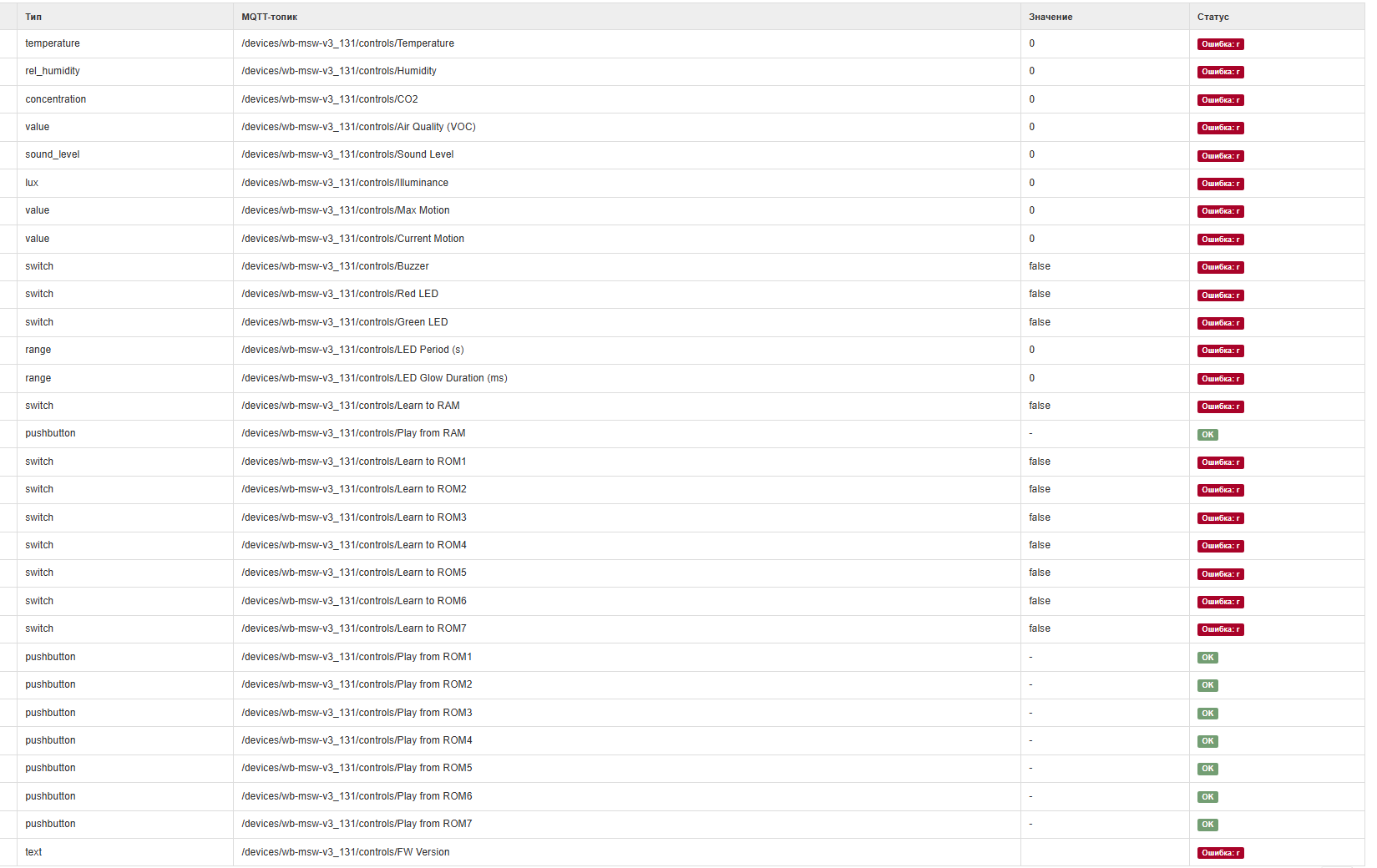проблема возникла так: забрасывал wb 6.7.2 до заводских с подключёнными устройствами и обновился не только wb 6.7.2 но и все подключённые устройства, и в следствии wb-msw-v3_131 перестал нормально определяться в web ui