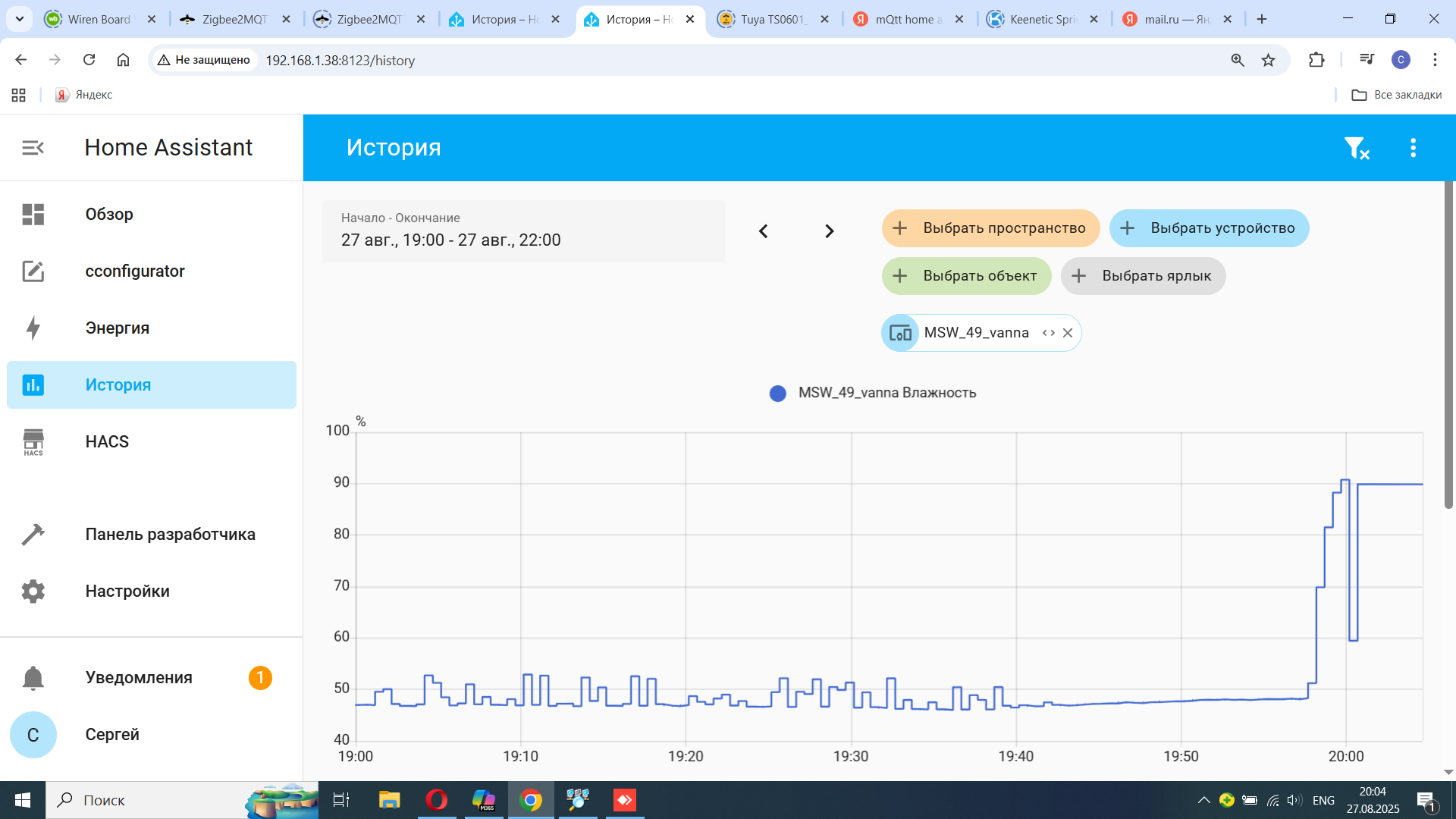 Доброго времени суток! Будьте добры подскажите датчик влажности большая просадка вниз и обратно высылаю г