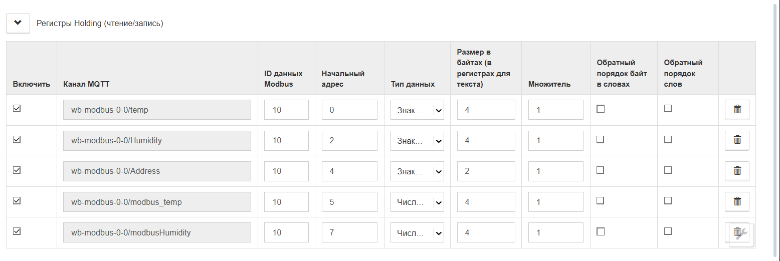 Есть WB 8.5.2 …по rs-485-1 опрашиваю датчик температуры и влажности типа ths-01-modbus… данные получаю…все ок