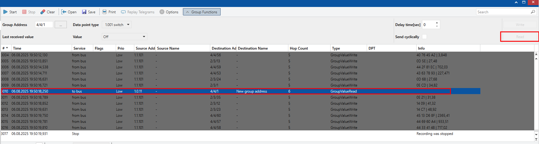 Доброго вечера. В шине KNX бывают устройства которые могут послать запрос на считывание актуального значения в ГА. В ETS это можно например сделать в диагностике: