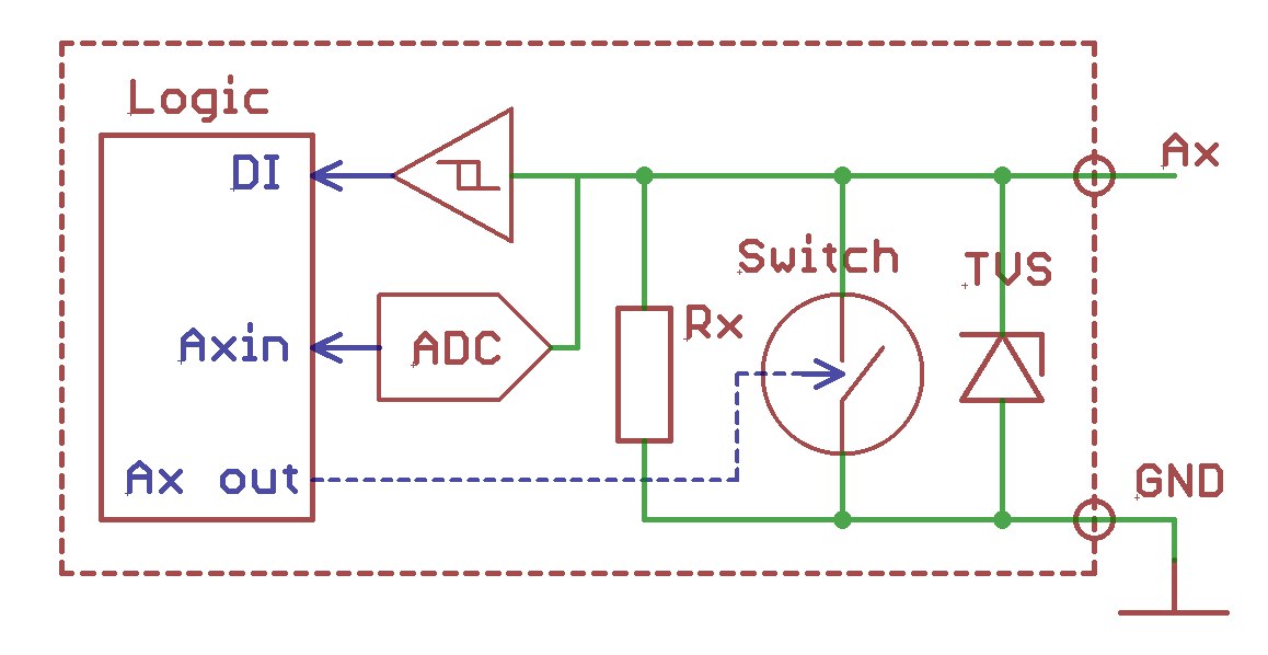 Нарисован выход “Открытый коллектор”, вход цифровой и аналоговый. То есть клеммы A1 -A4 можно использовать в нескольких вариантах, в том числе и комбинируя их/