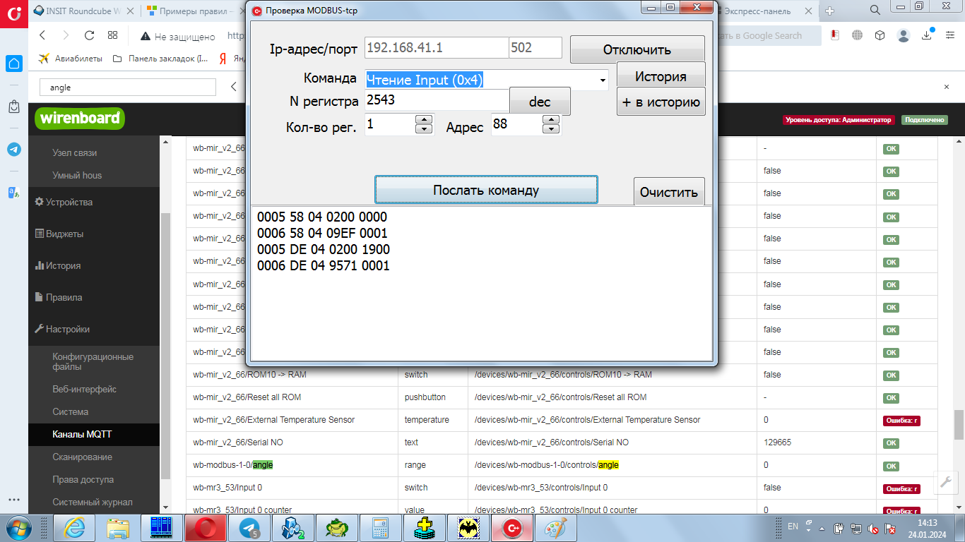 попытке изменить wb-mqtt-mbgate.conf (активаровать регистр, изменить