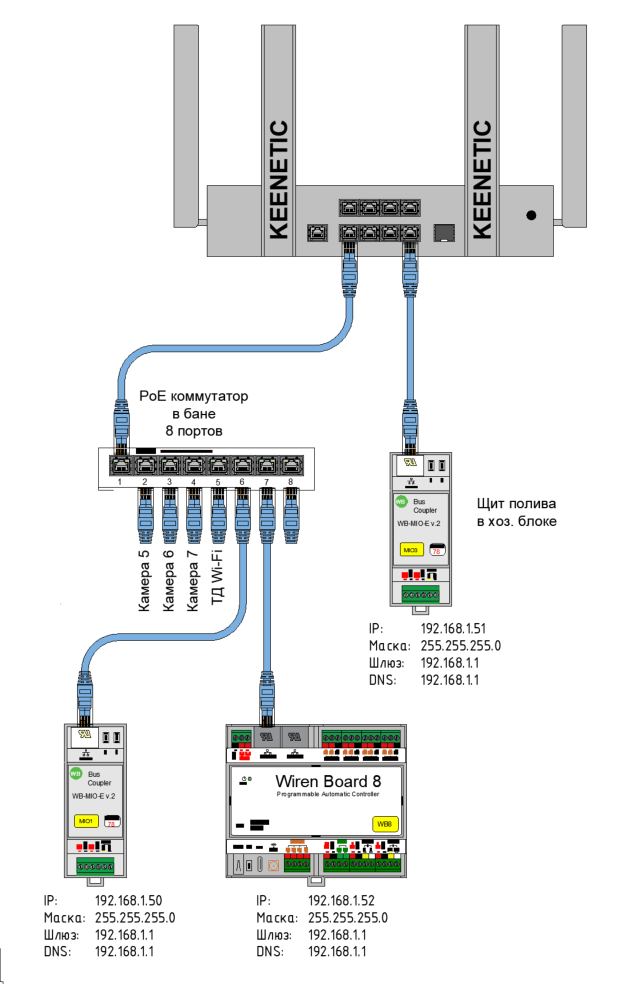 Контроллер 192.168.1.52 в сети и видит шлюз в хоз. блоке 192.168.1.51