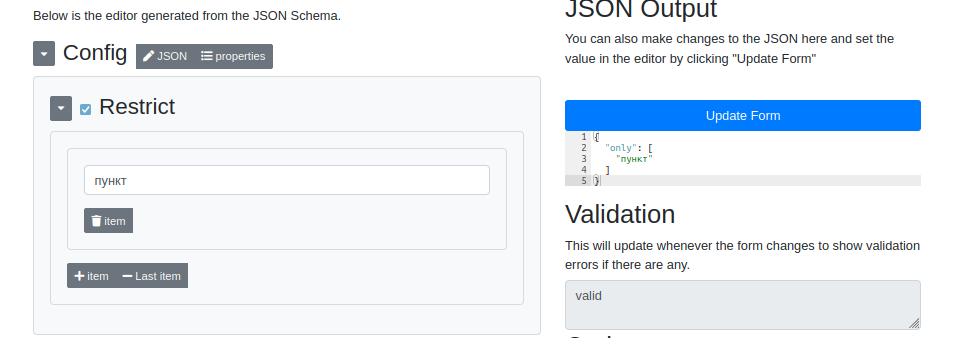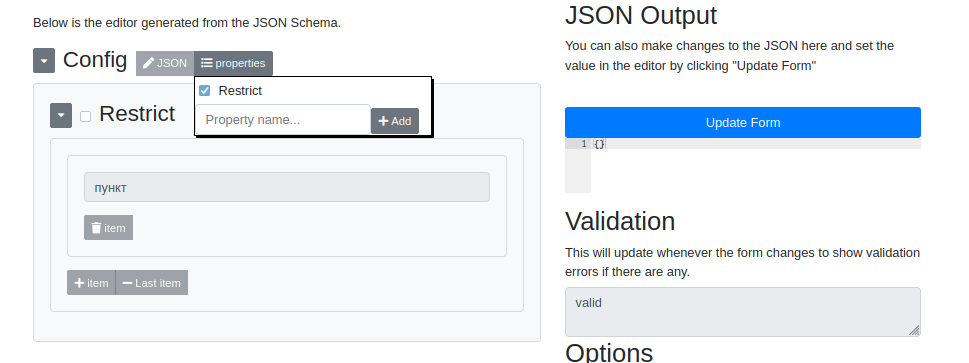 Если вы хотите «раздел, который можно включить/выключить» — это должен быть объект restrict, который появляется в JSON только после включения.