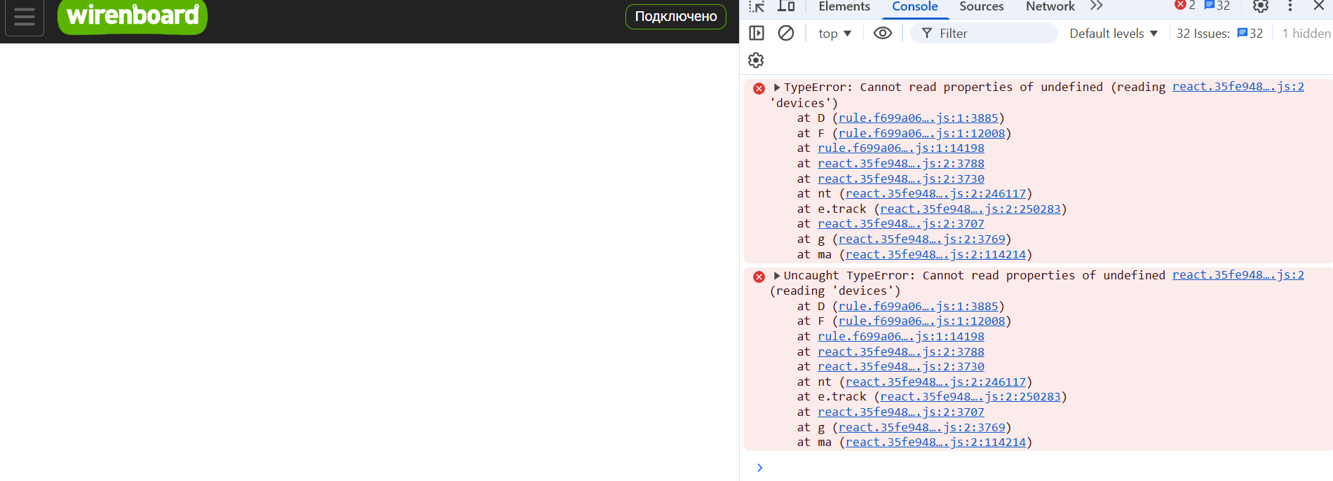 react.35fe9480e846794f12a9.js:2 TypeError: Cannot read properties of undefined (reading ‘devices’)