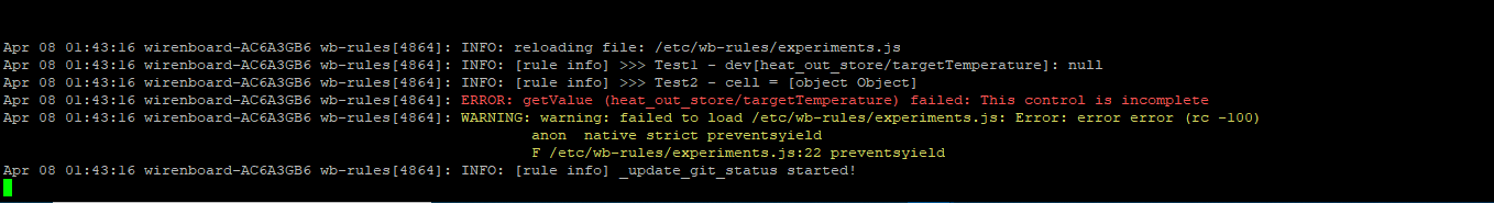 Apr 08 01:43:16 wirenboard-AC6A3GB6 wb-rules[4864]: WARNING: warning: failed to load /etc/wb-rules/experiments.js: Error: error error (rc -100)