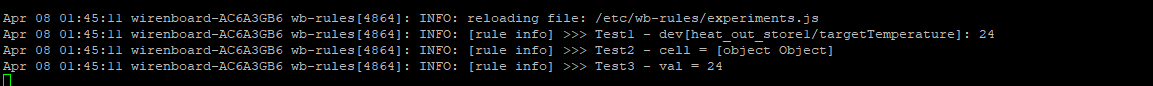 Apr 08 01:45:11 wirenboard-AC6A3GB6 wb-rules[4864]: INFO: [rule info] >>> Test1 - dev[heat_out_store1/targetTemperature]: 24
