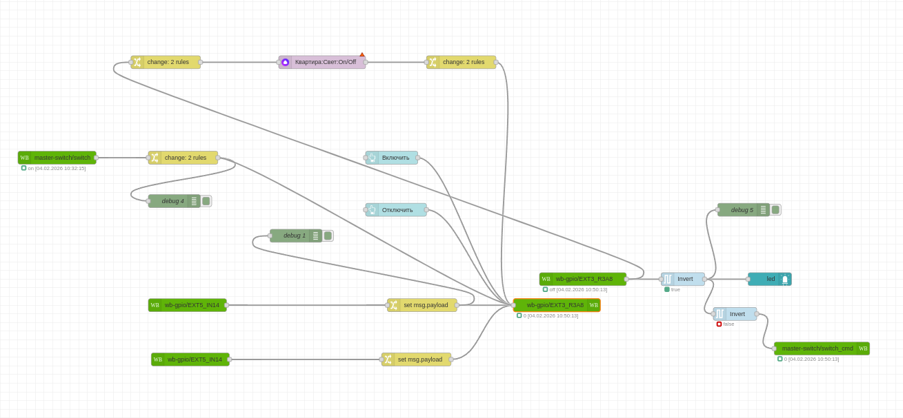 Выключатель подключен на - wb-gpio/EXT5_IN14