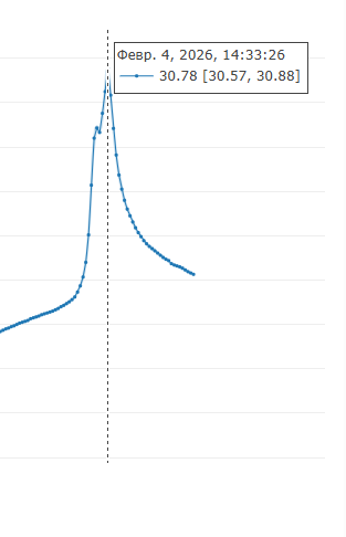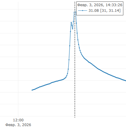 - Стоит в жилой комнате, 110см от пола, такой скачок температуры невозможен. Рядом с ним ничего греющего нету. На 4х других датчиках в доме таких артефактов нету.