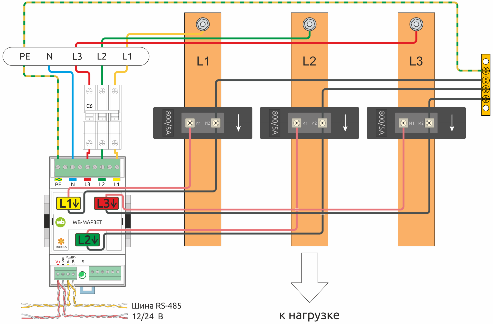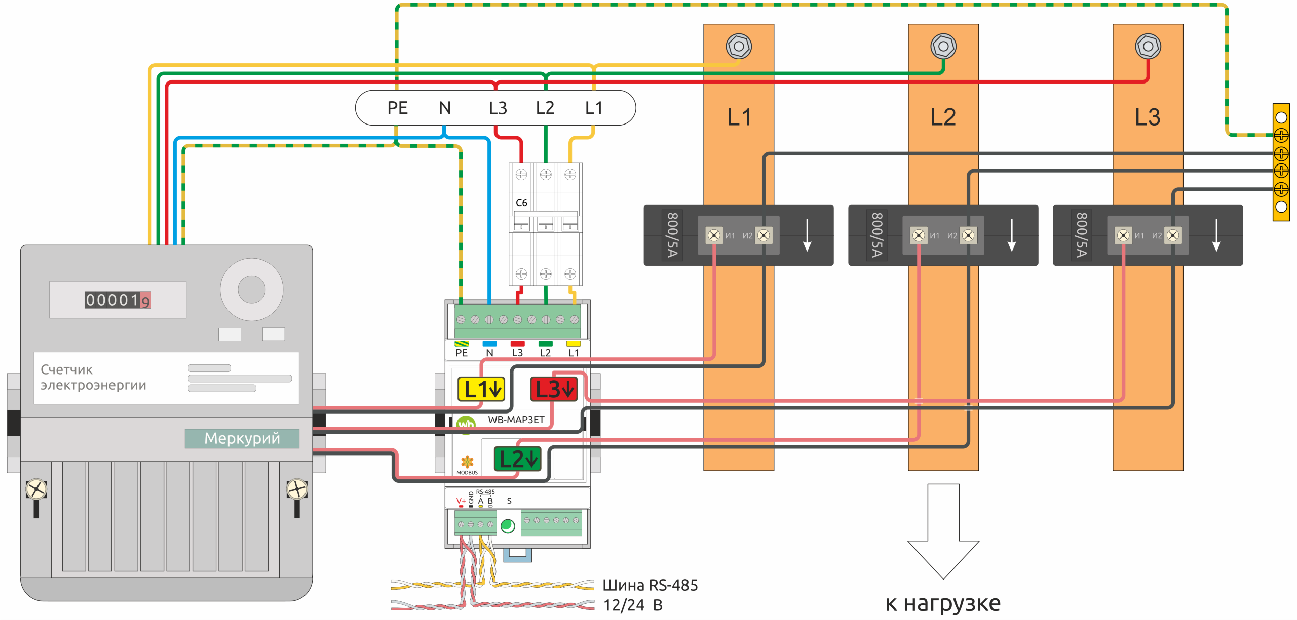 Добрый день. Можно использовать WB-MAP3ET для измерения через вторичную обмотку больших ТТ по схемам