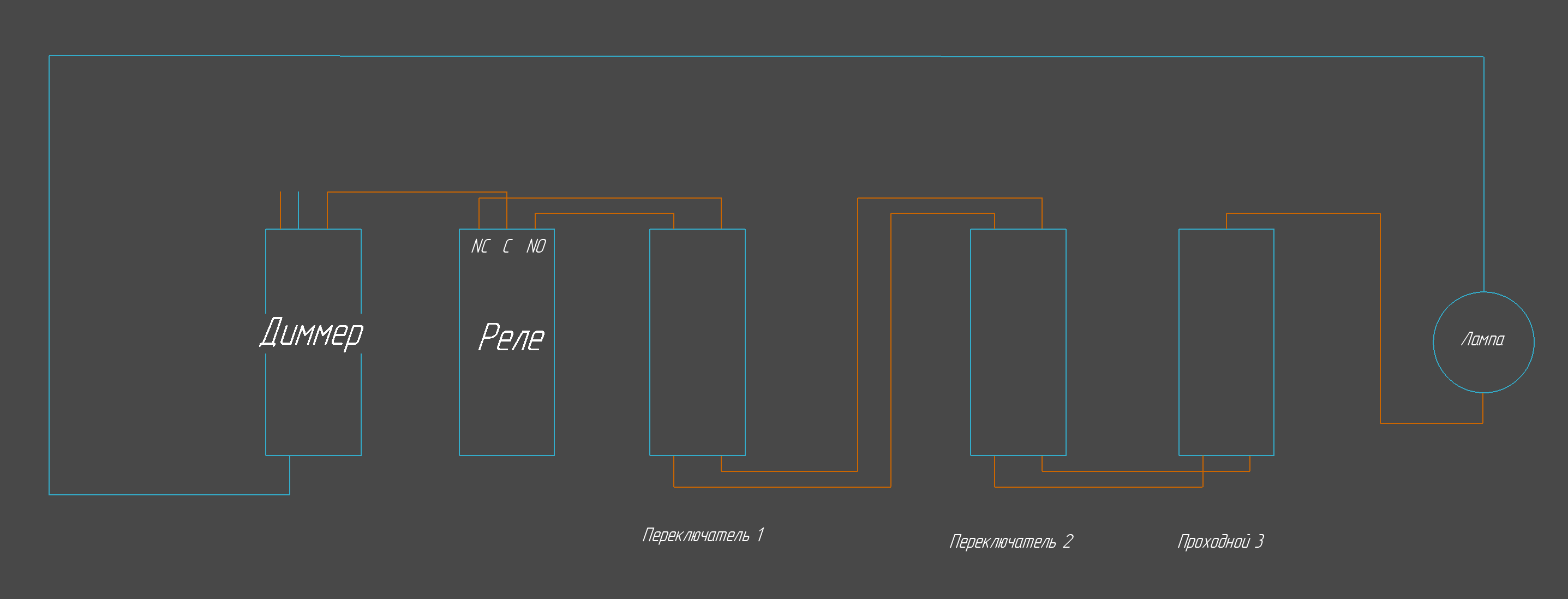 И назначение реле на вашей схеме не понятно назначение реле, на COM контакт которого подключен выход диммера.