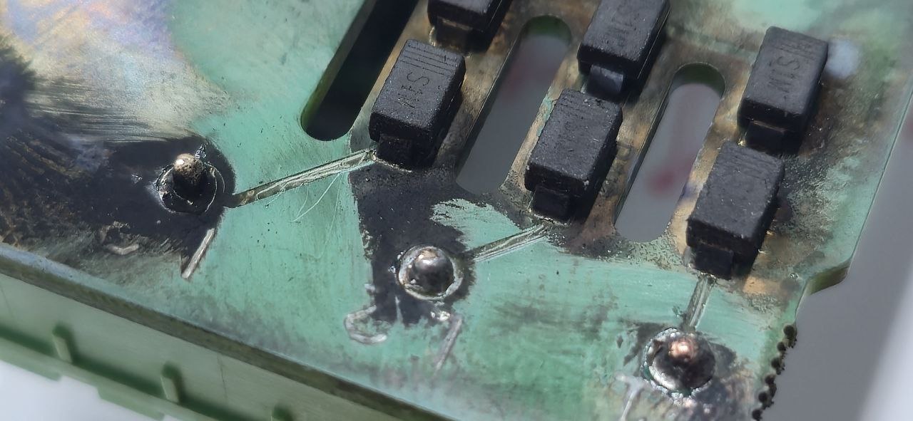 После полугода использования сгорел map-3e, при этом не просто сгорел, от терминалов до входных диодов испарились дорожки. Фото прилагаю. Вопрос - отсутствие земли могло стать причиной такому? Помимо этого, подключено штатно, по схеме. Единственный выход - купить новый map-3e? Перепадов по сети не было. Рядом такой же счётчик стоит - всё хорошо, работает штатно. Диоды 4 штуки пробой, 2 штуки - обрыв.