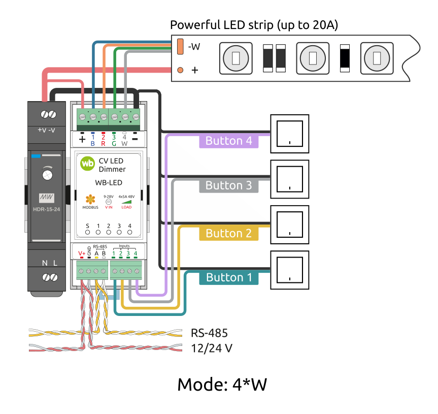 Можно ли подключить 2 блока питания 24в., к диммеру WB-led.