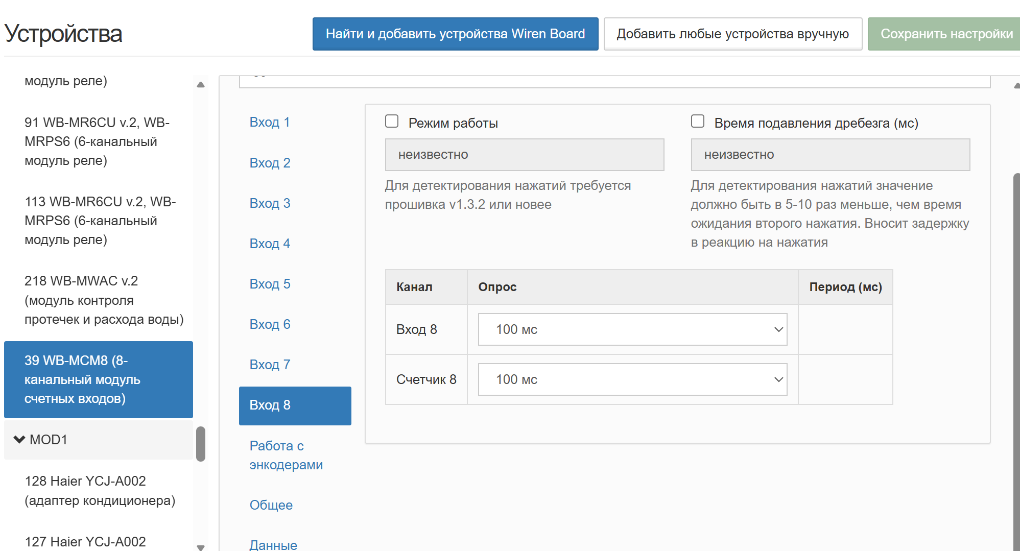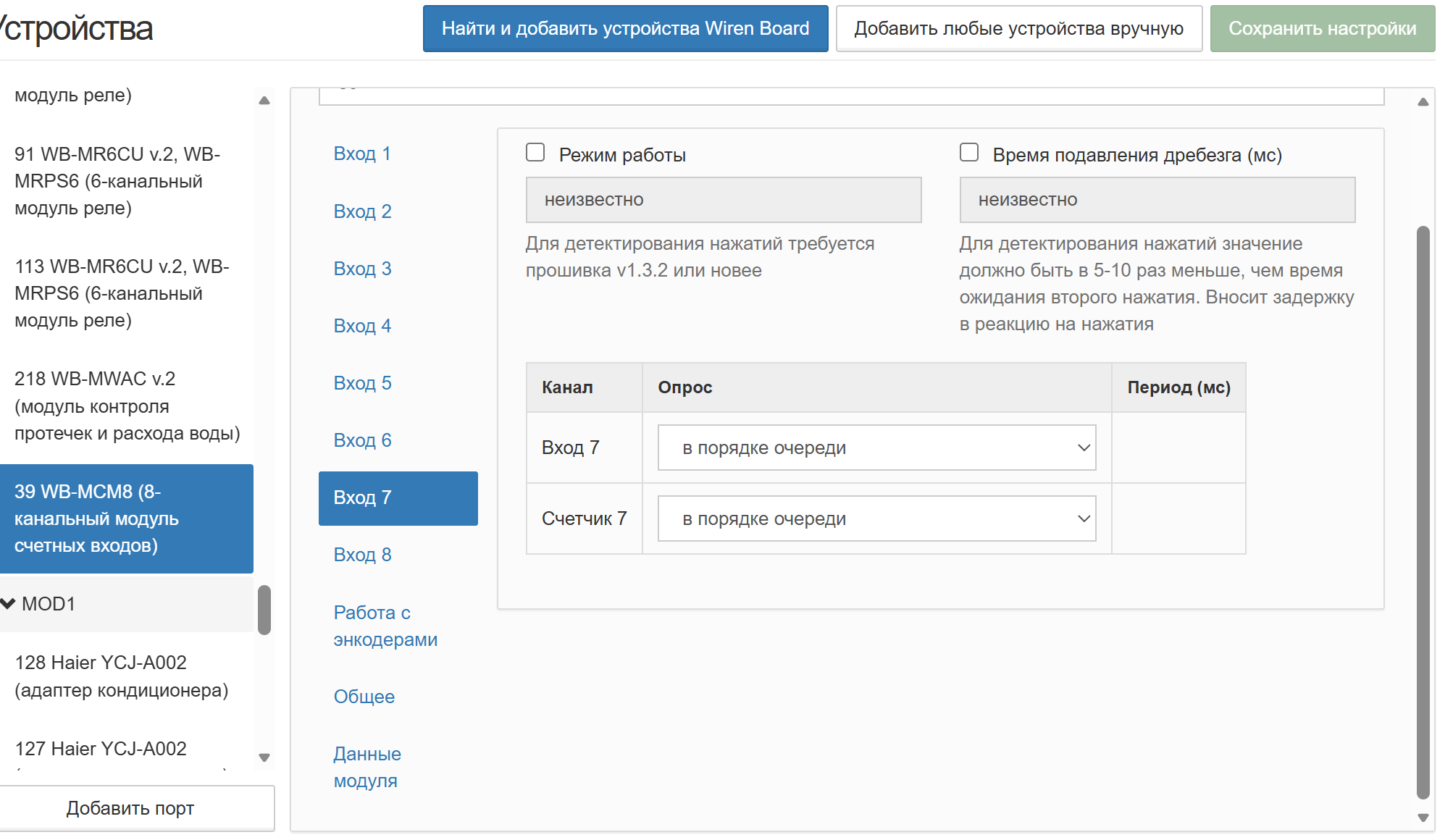 Так же еще можно присвоить для WB-MCM8 меньший slave ID. WB-MR6CU имеет “slave_id” : “1”, а WB-MCM8 “slave_id” : “39”. Поменяйте их и проверьте результат.