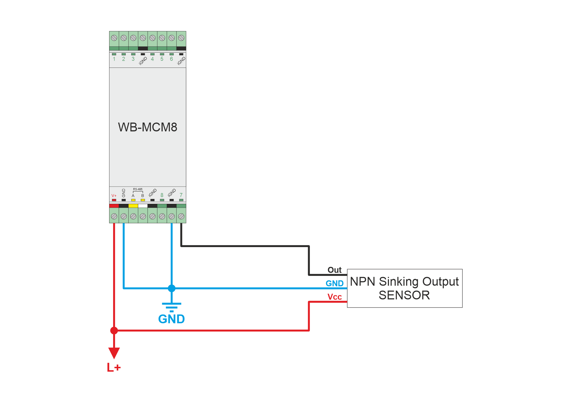 Но не могли бы ещё одно небольшое уточнение не по теме сделать по поводу схемы подключения датчиков с открытым коллектором к входам модуля WB-MCM8?