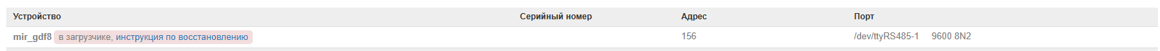 Выполните проверку связи по RS-485, а затем попробуйте повторить восстановление.