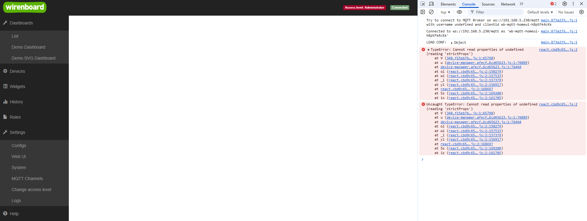 При создании шаблона modbus-устройства и задании адреса параметра в виде “адрес:сдвиг:размер” после выбора типа устройства фрейм с параметрами устройства не отображается. В JS-консоли: