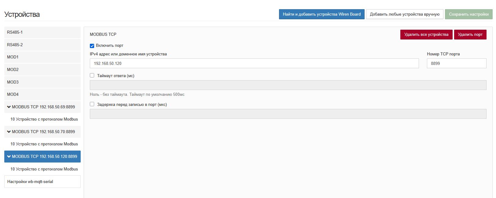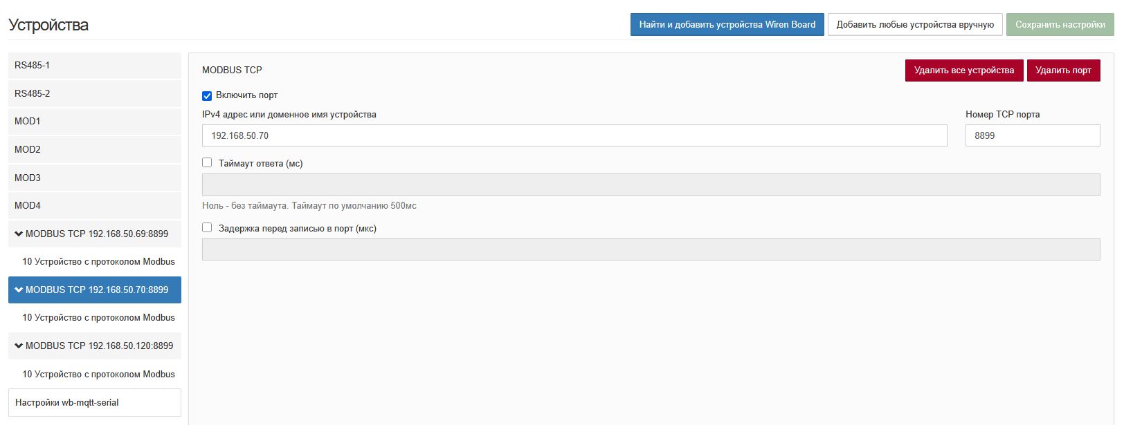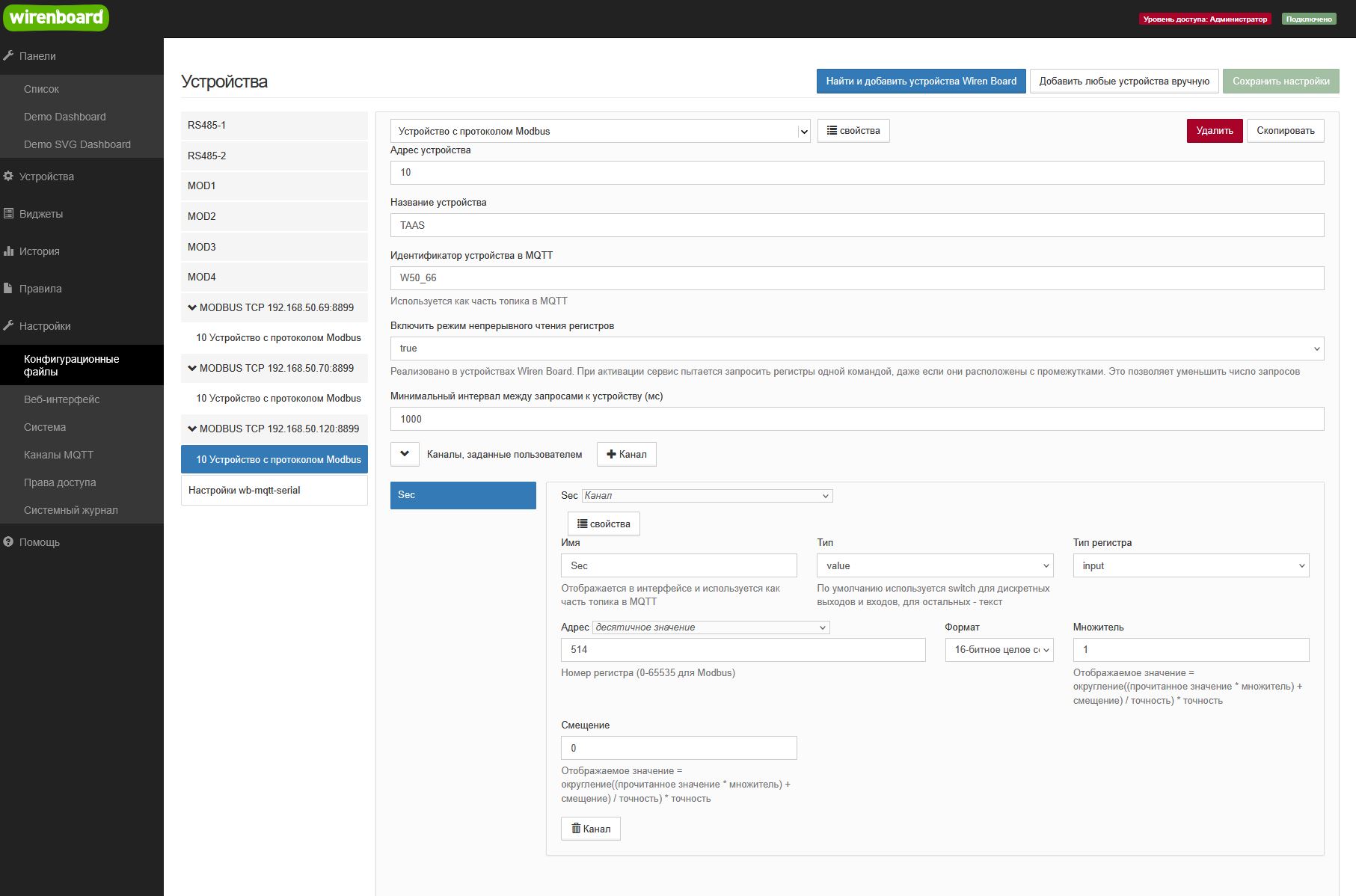 Есть настройки 2 одинаковых устройств, читаемых по MODBUS TCP через Wi-Fi. Отличаются только IP адресом. 192.168.50.70 (TAAS1) и 192.168.50.120 (TAAS).