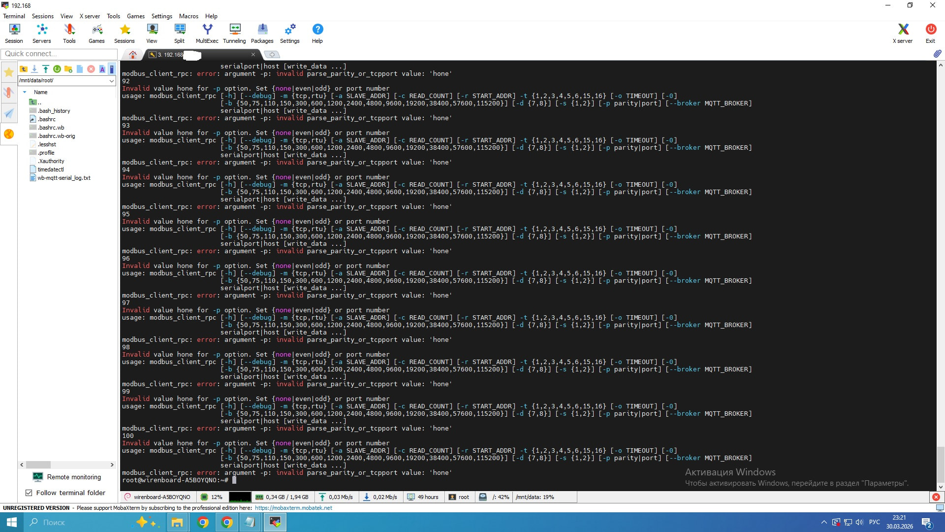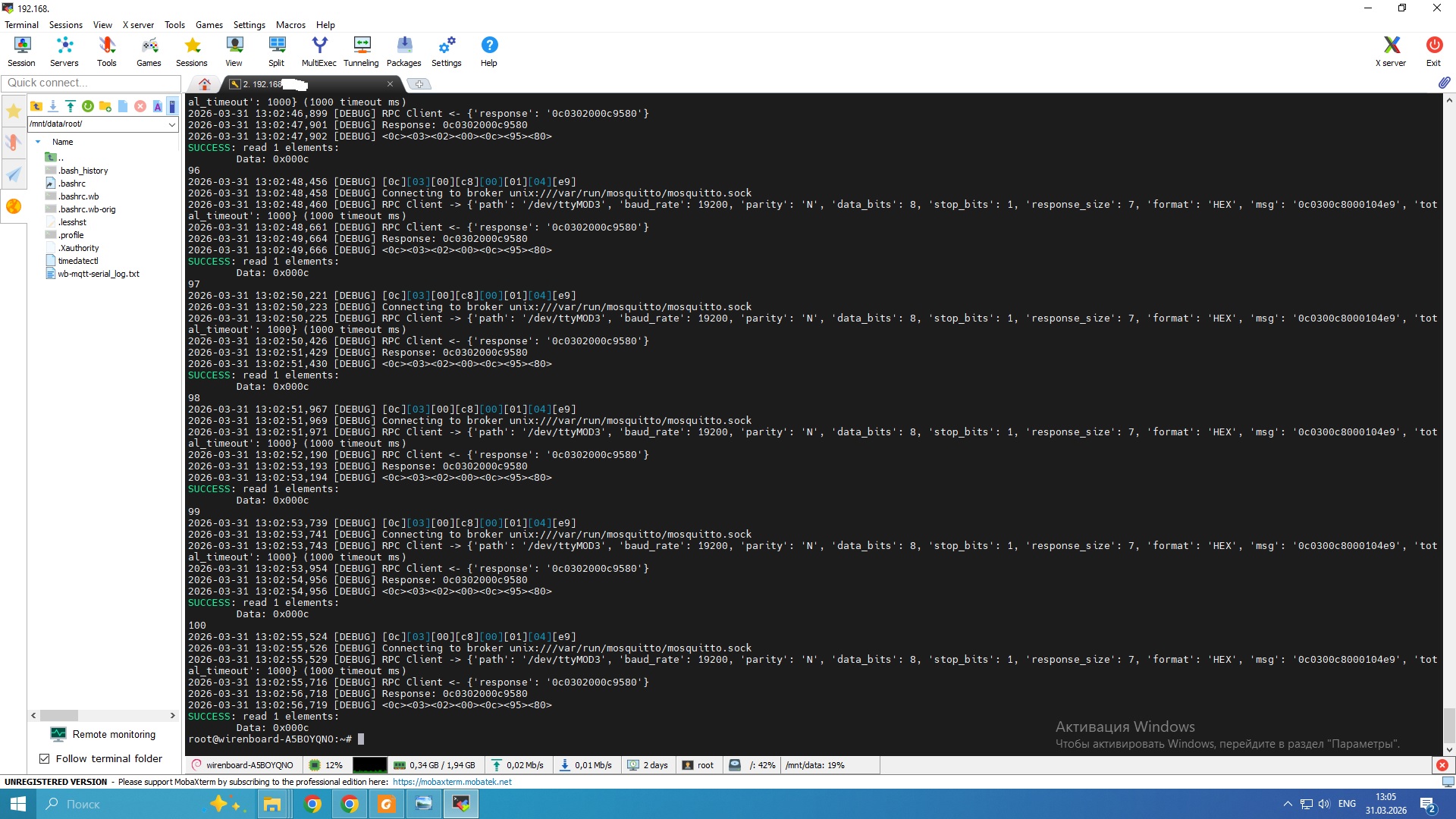 Ошибка связи модуля WBE2-EBUS с контроллером через порт /dev/ttyMOD3. Устройства на порту /dev/ttyRS485-1, теоретически не должны повлиять на работу WBE2-EBUS. Здесь проблему с шиной исключаем, остается только считать что проблема с портом контроллера или с самим модулем.