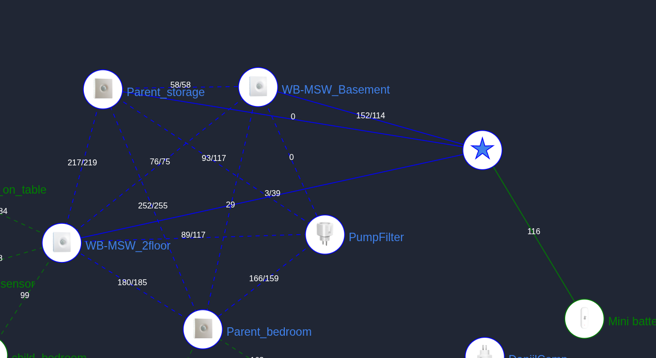 Но идея с ретрансляторами лучше и проще. По пути от 1 до 2 этажа расположить розетки/лампочки/реле. Реле даже проще спрятать будет. И пусть ретранслируют. Если не хватит одного, установить несколько по маршруту. Но учтите, что сеть Zigbee перестраивается долго. Контроллируйте в карте сети Zigbee2mqtt