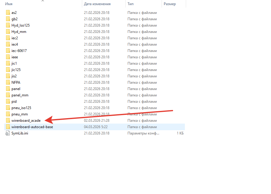 - папки с символами (DWG) — schematic, panel и т. п.;