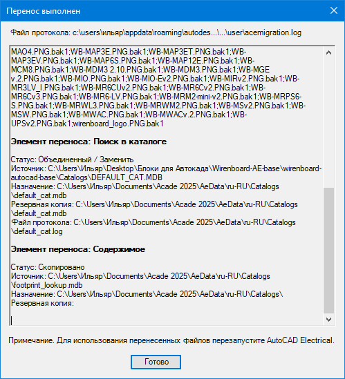 Речь идёт про установку базы Wirenboard-AE-base.zip в AutoCAD Electrical 2025.