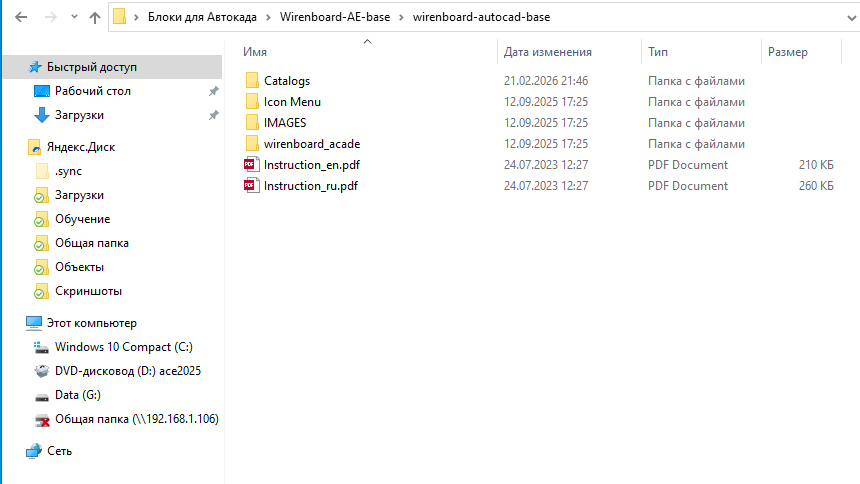 Таким образом, следующая точка — именно следовать встроенной инструкции Instruction_ru.pdf из архива: это официальный способ установки базы Wiren Board в AutoCAD Electrical.